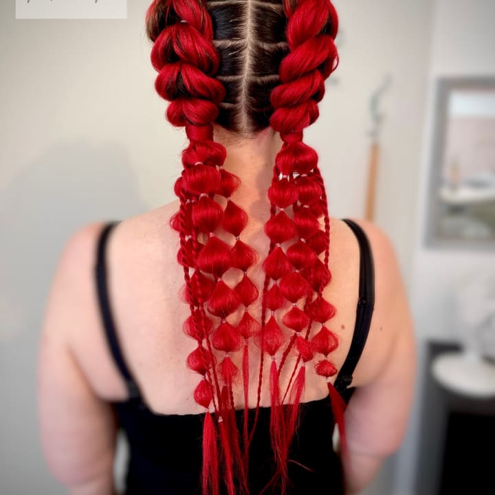 - Pikkuletit, rastat, kiharat kuituhiuksella koko päähän